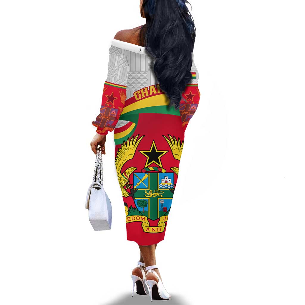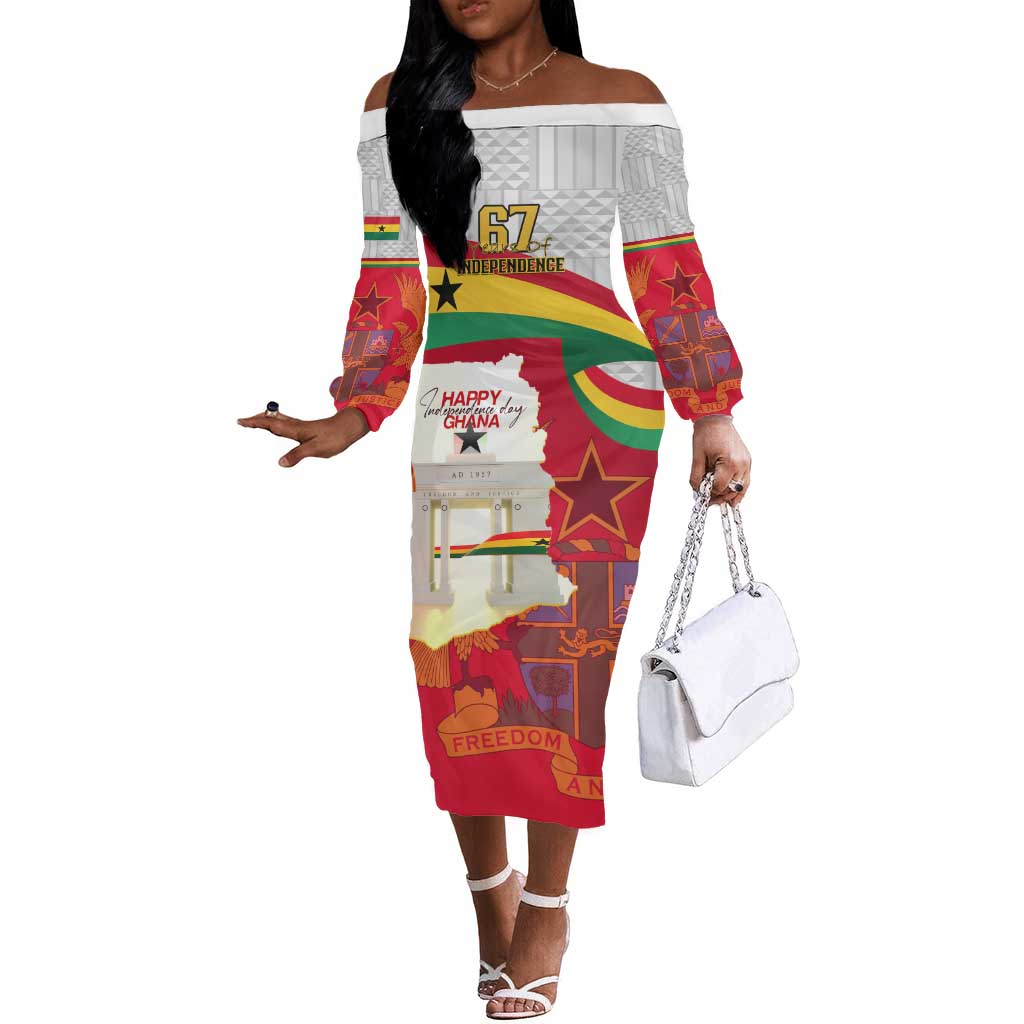 Ghana Independence Day Off The Shoulder Long Sleeve Dress Gana Map Happy 67 Years Anniversary