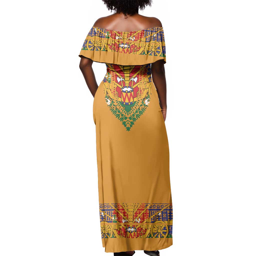 Haiti Flag Off Shoulder Maxi Dress Traditional Dashiki Yellow Color