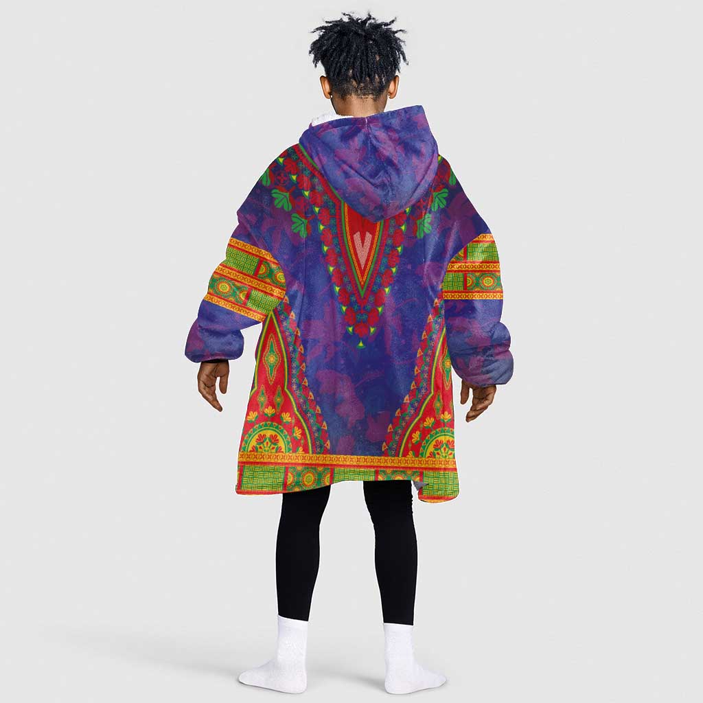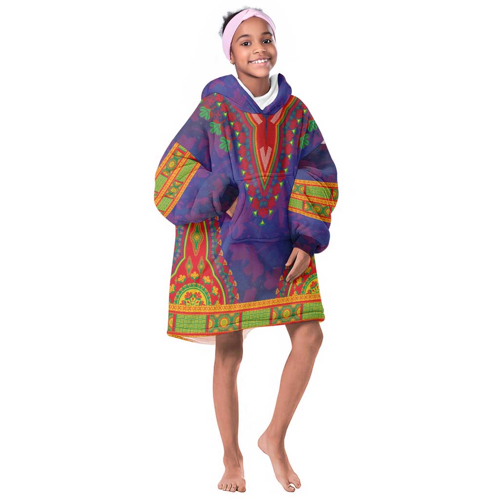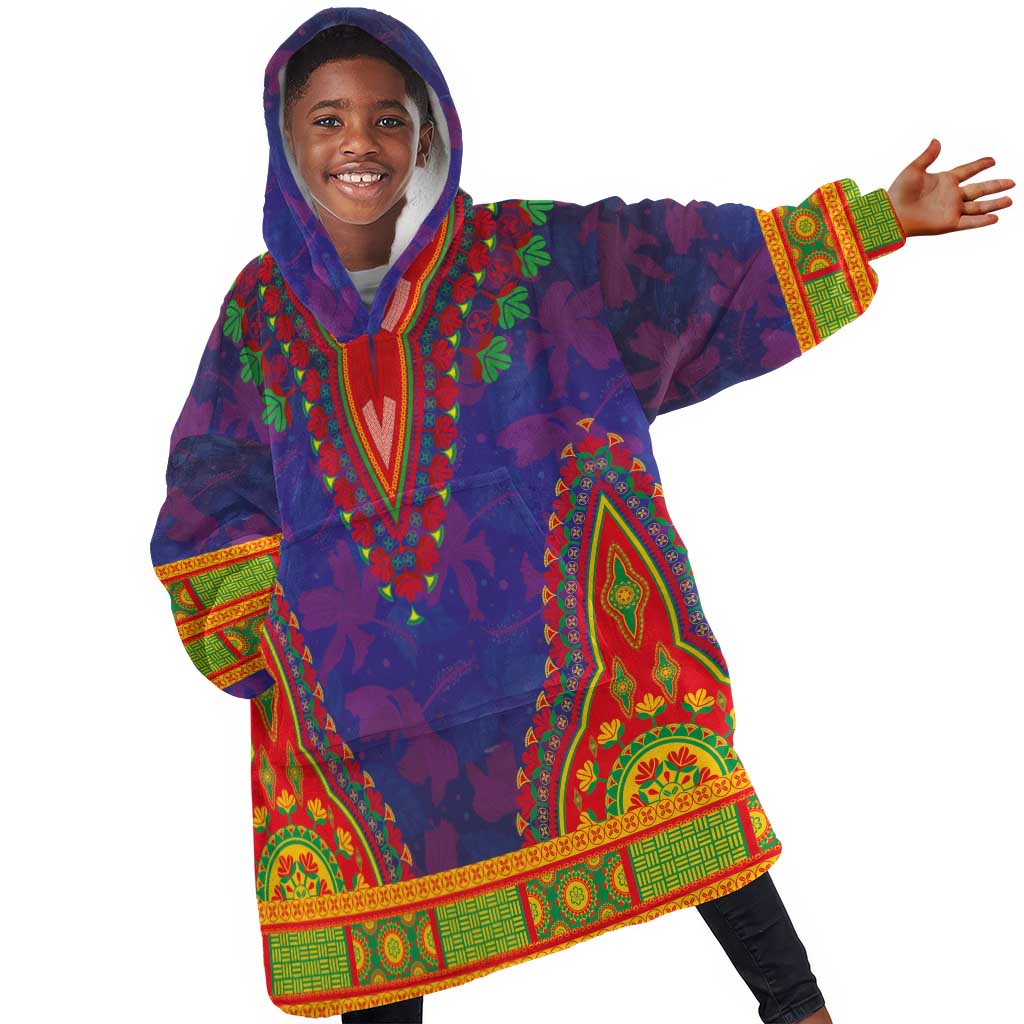Haiti Kid Wearable Blanket Hoodie Choeblack Dashiki Style Blue Color