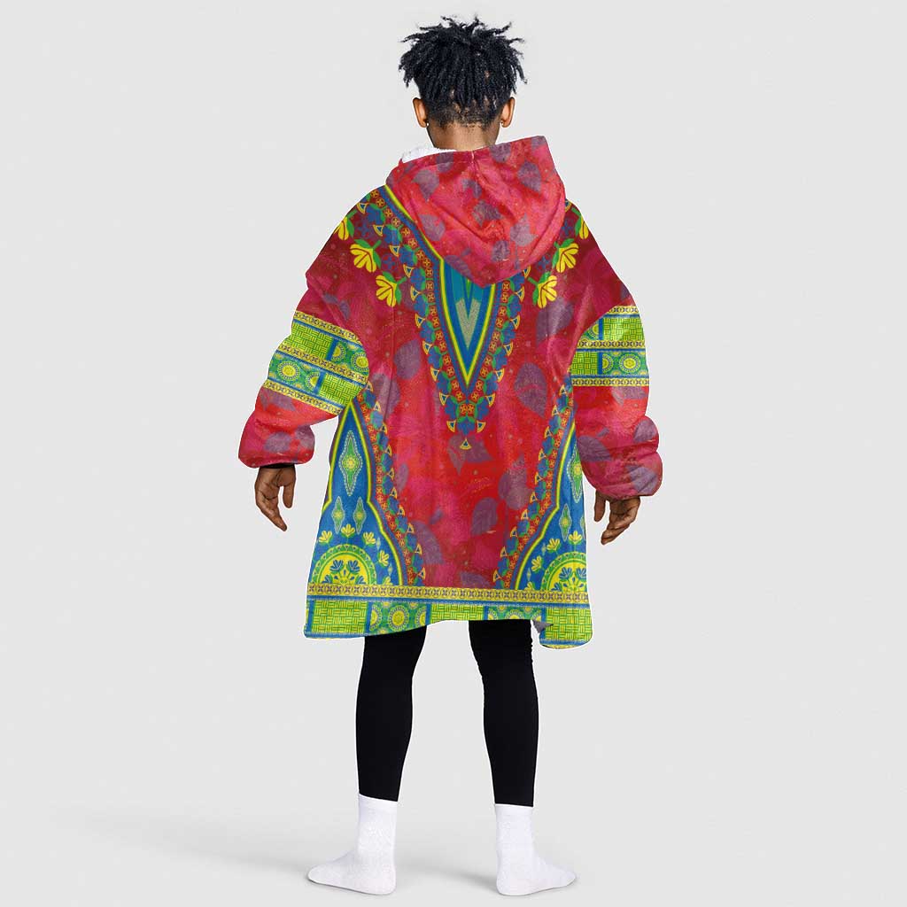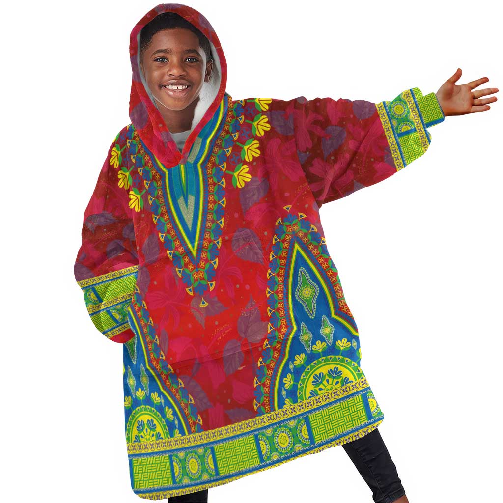 Haiti Kid Wearable Blanket Hoodie Choeblack Dashiki Style Red Color