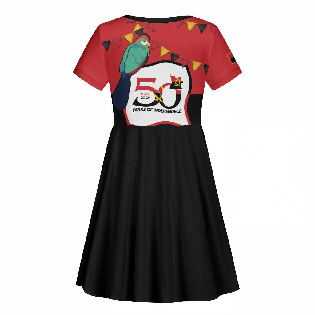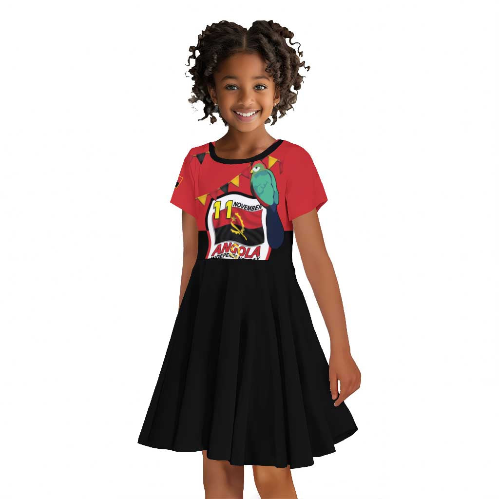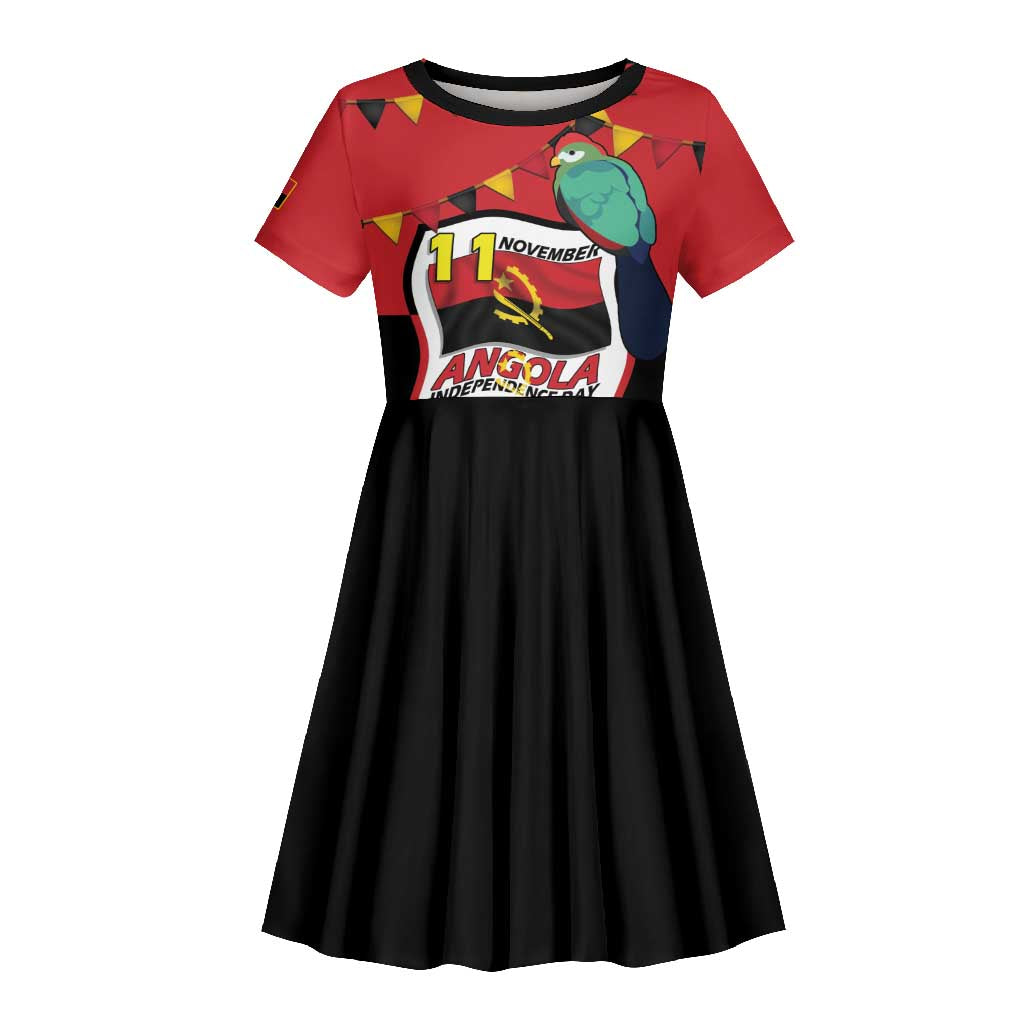 Happy Angola Independence Day Kid Short Sleeve Dress With Red-crested Turaco