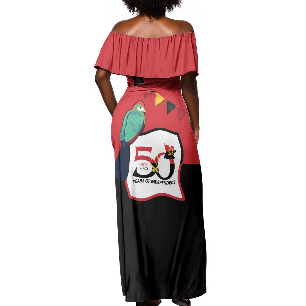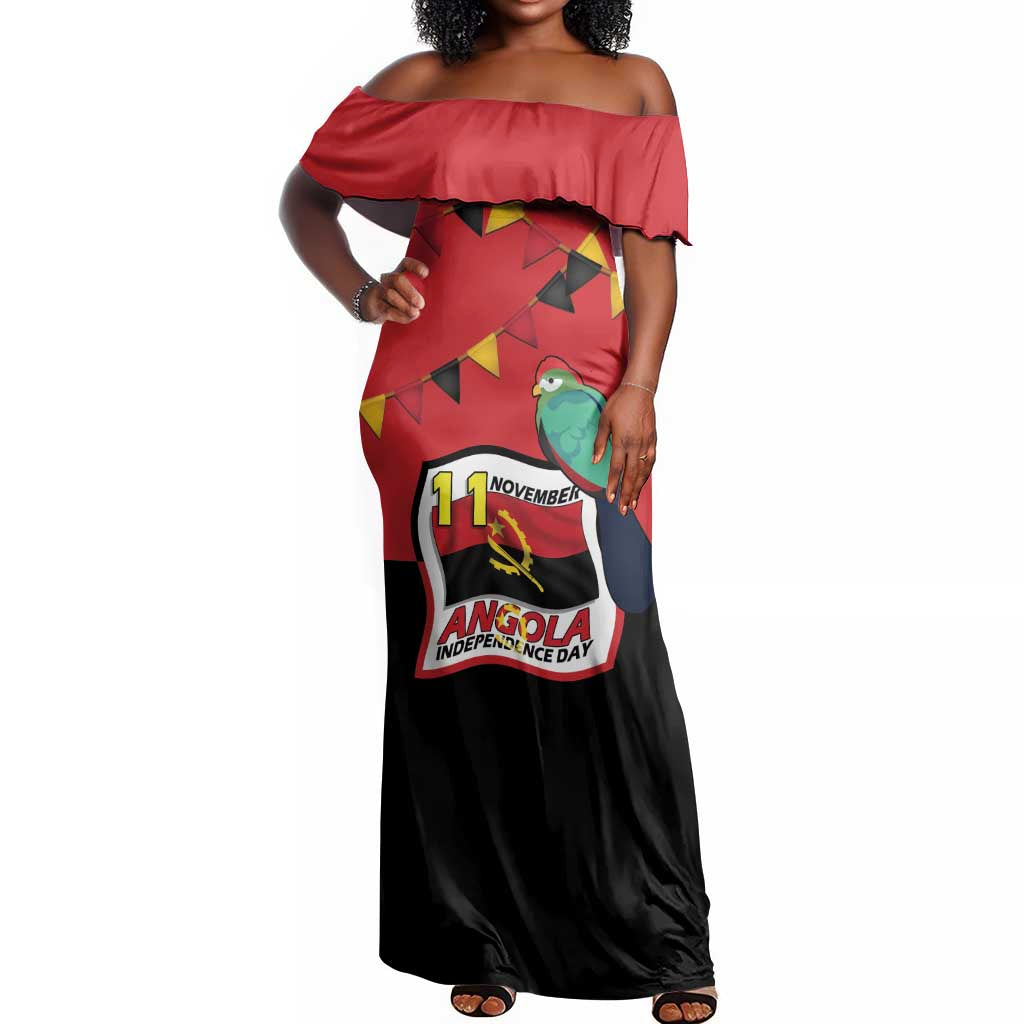 Happy Angola Independence Day Off Shoulder Maxi Dress With Red-crested Turaco