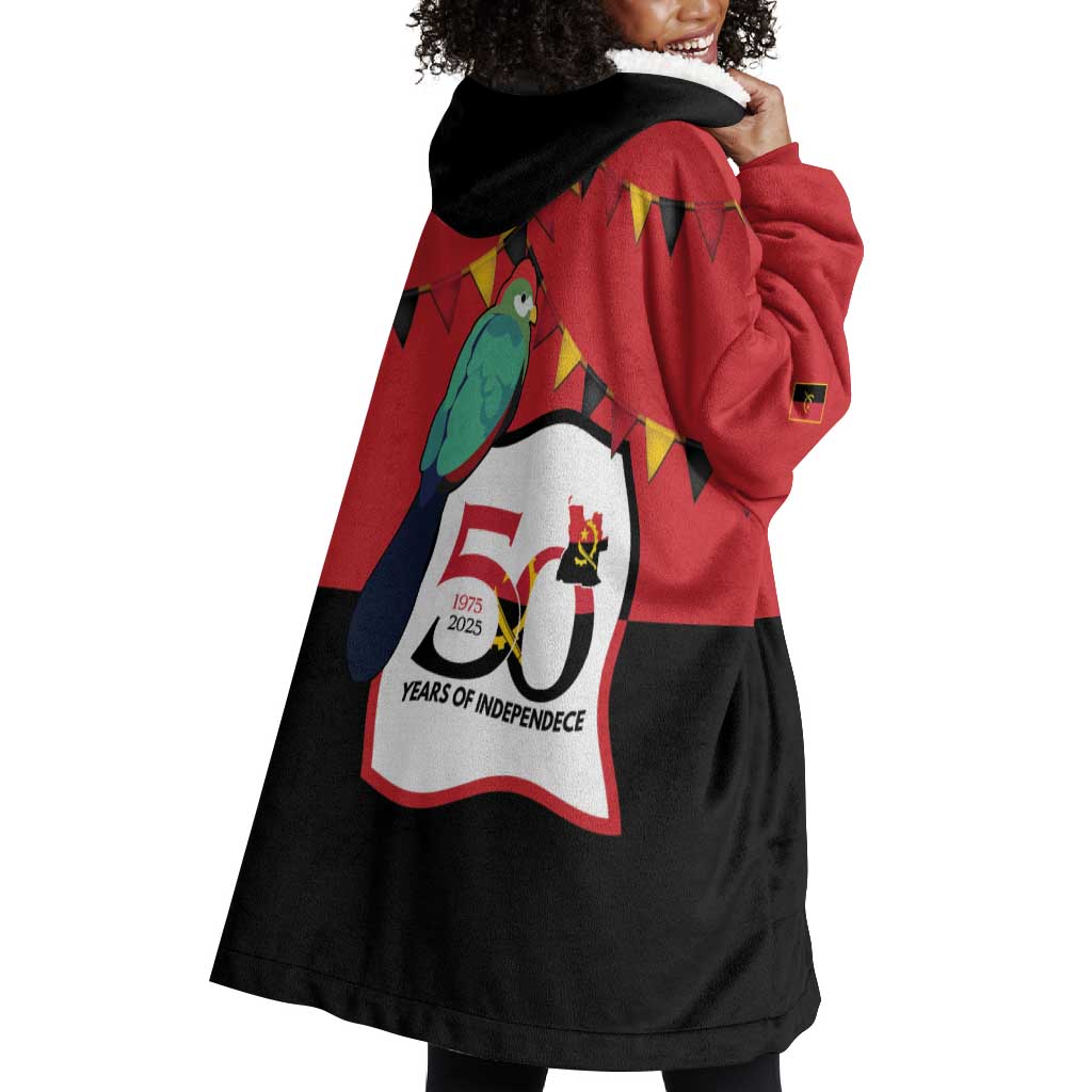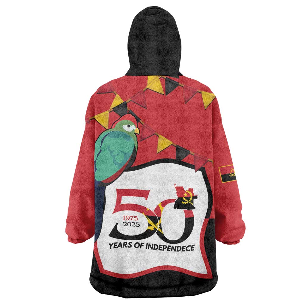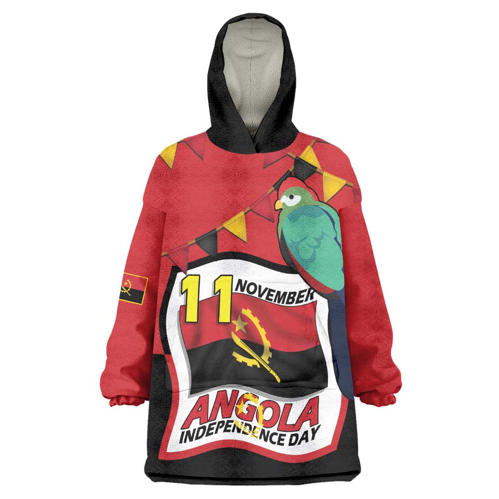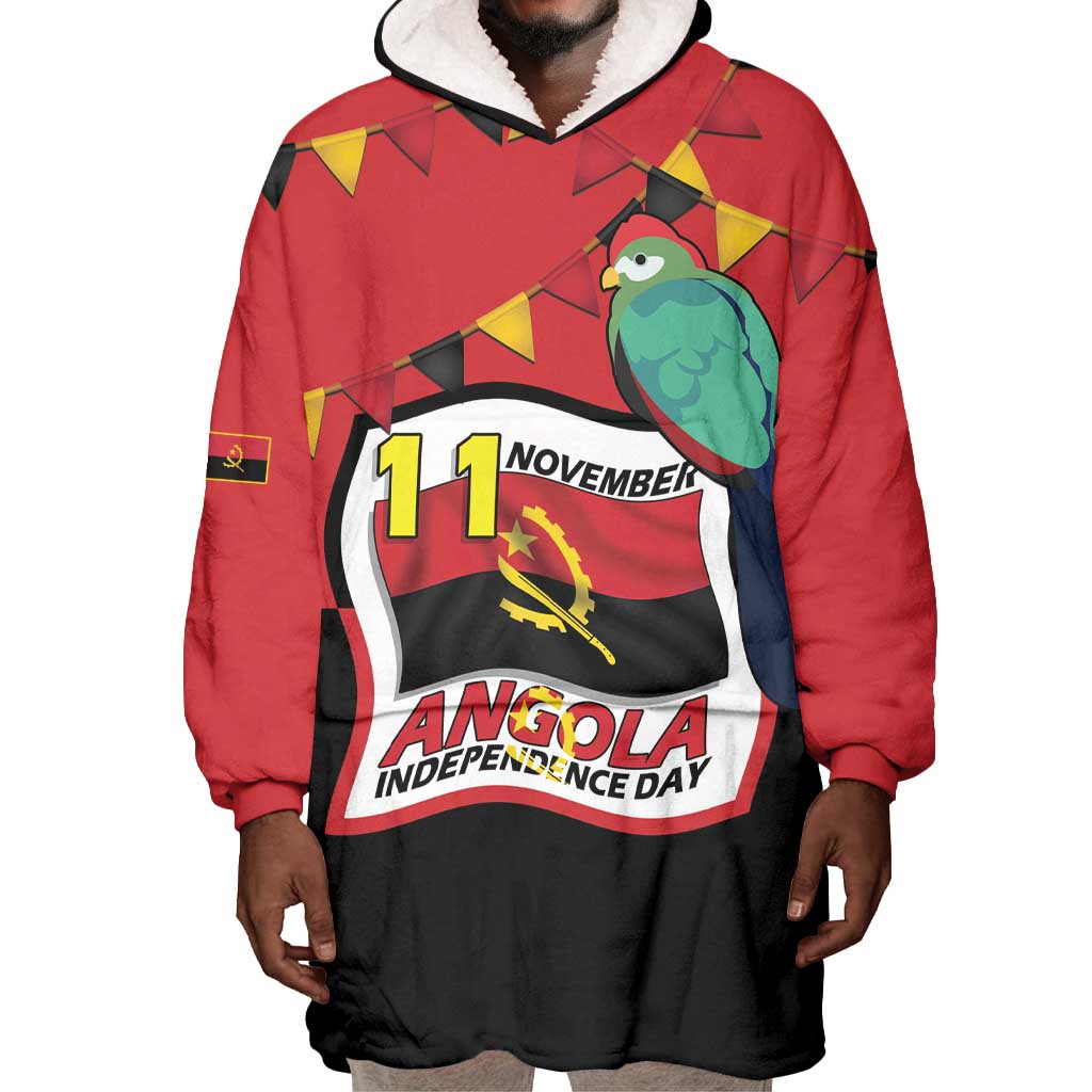 Happy Angola Independence Day Wearable Blanket Hoodie With Red-crested Turaco