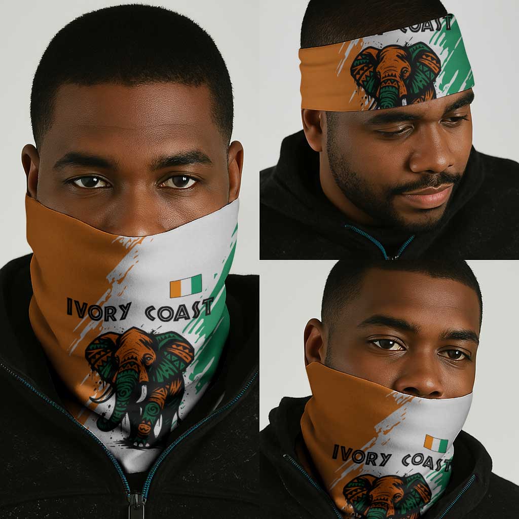 Ivory Coast Neck Gaiter African Elephant in Ivorian Flag Colors