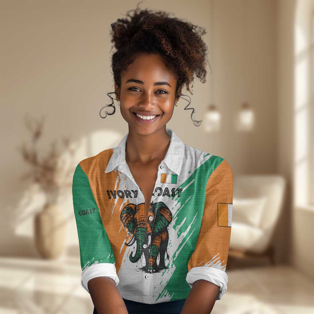 Ivory Coast Women Casual Shirt African Elephant in Ivorian Flag Colors