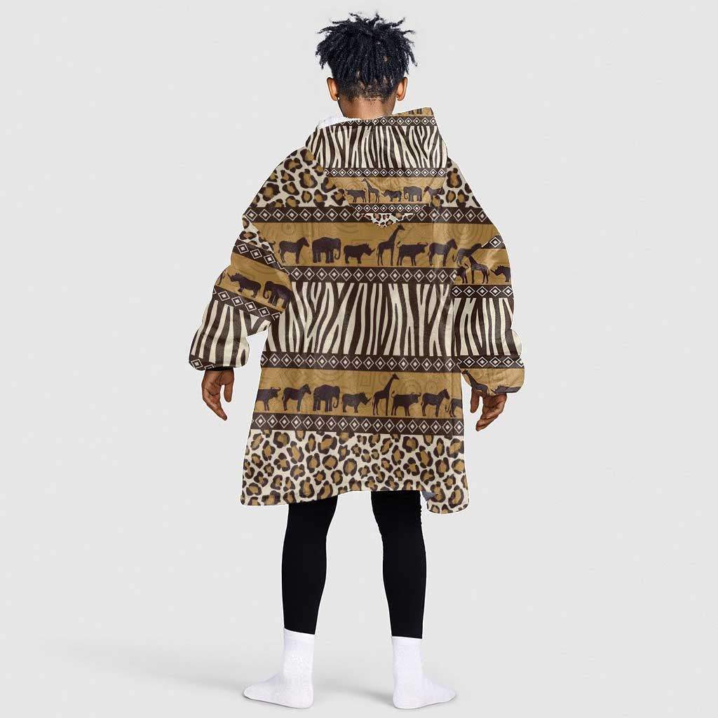 Leopards and Zebra Skins Kid Wearable Blanket Hoodie Mix African Pattern