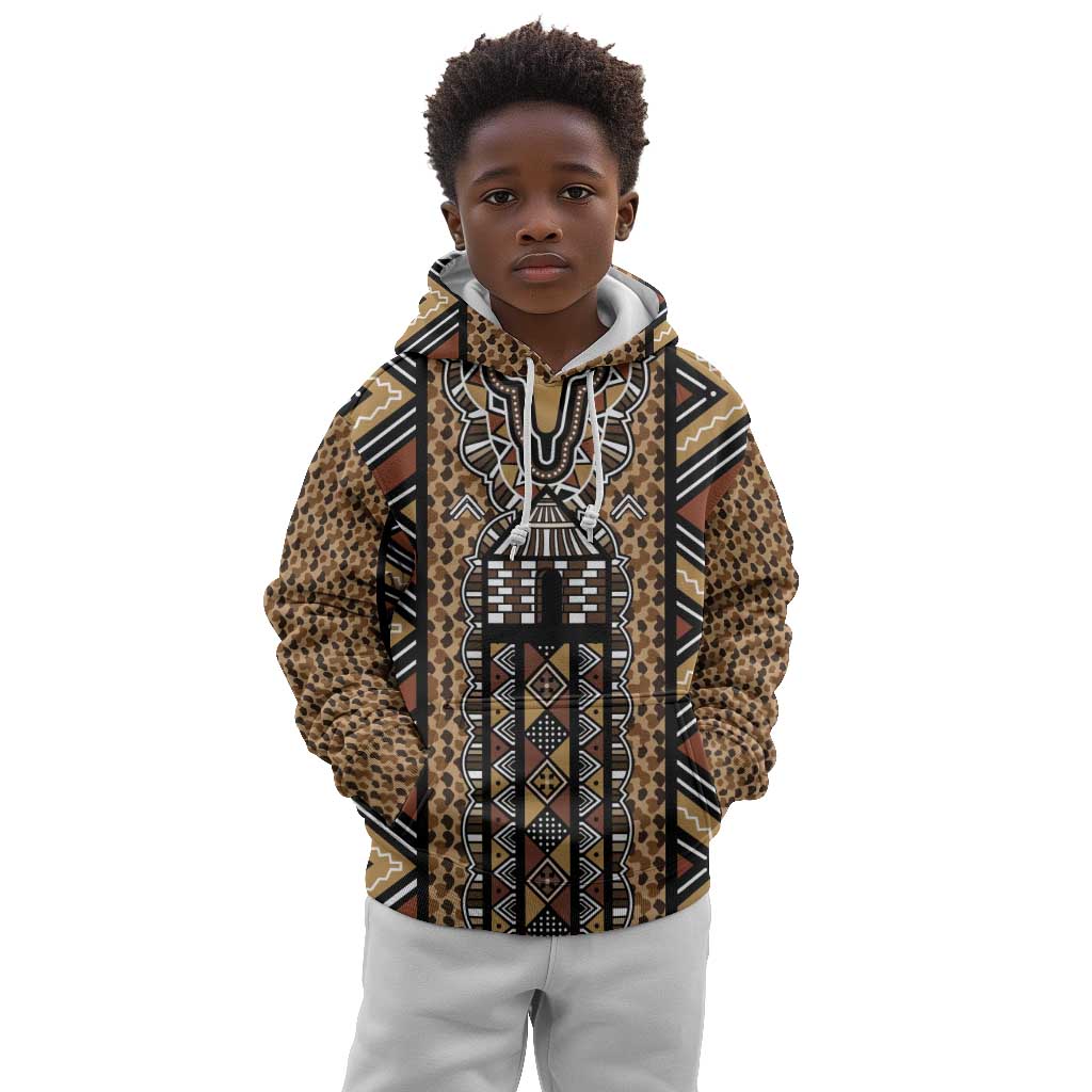 Mali Mud Cloth Leopards Legacy Kid Hoodie African Tribal Pattern