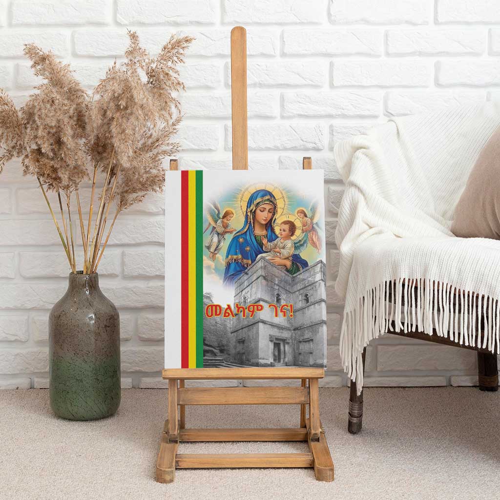 Melkam Gena Ethiopia Canvas Wall Art Saint Mary Lalibela Churches