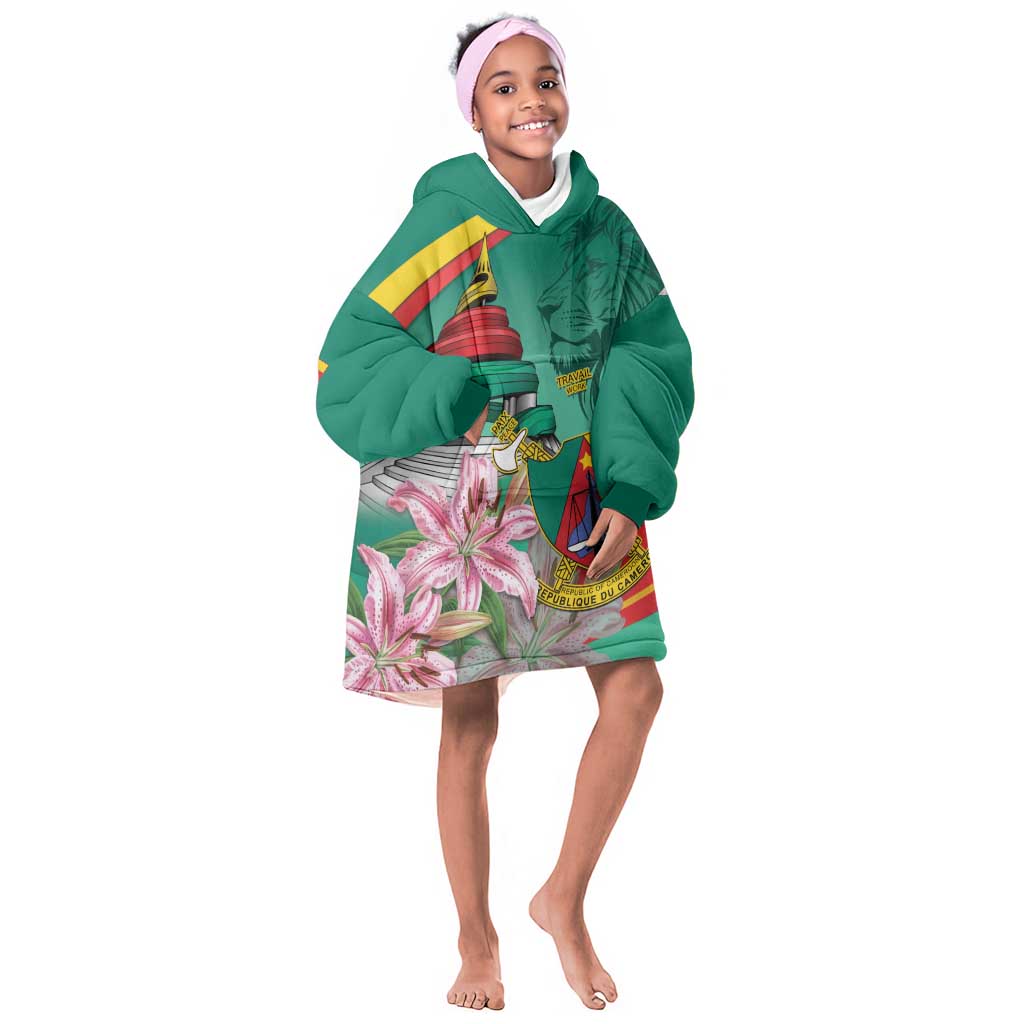 Monument de la Reunification Cameroun Kid Wearable Blanket Hoodie Coat Of Arms With Lily Flowers