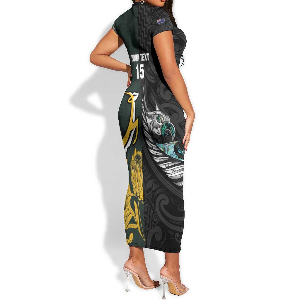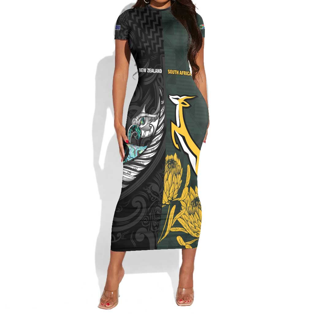 New Zealand vs South Africa Rugby Custom Short Sleeve Bodycon Dress Maori - African Pattern