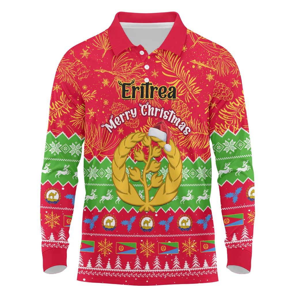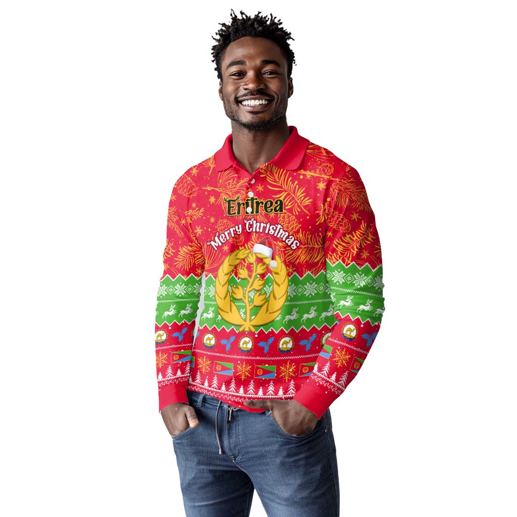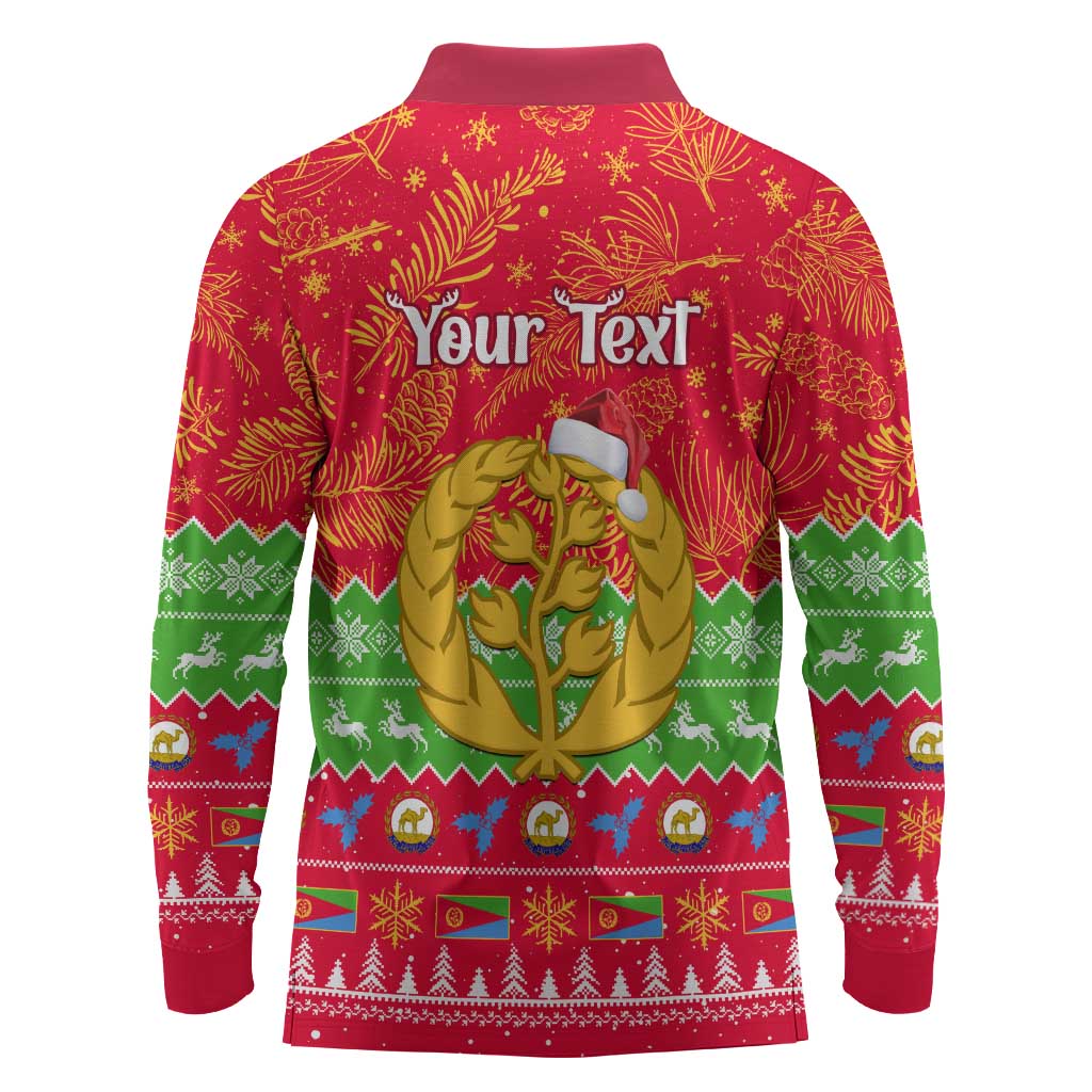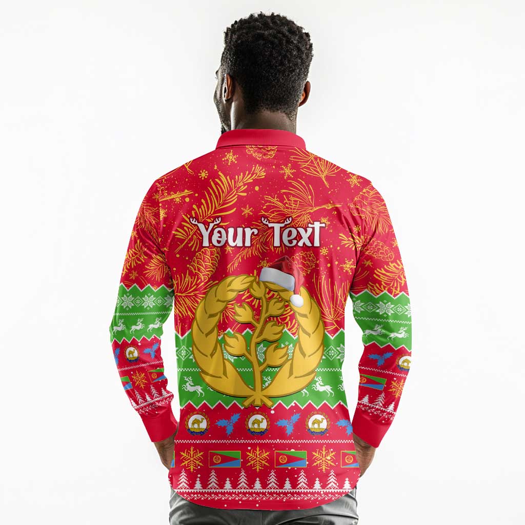 Personalised Eritrea Christmas Long Sleeve Polo Shirt Eritrean Olive Santa Claus Merry Xmas