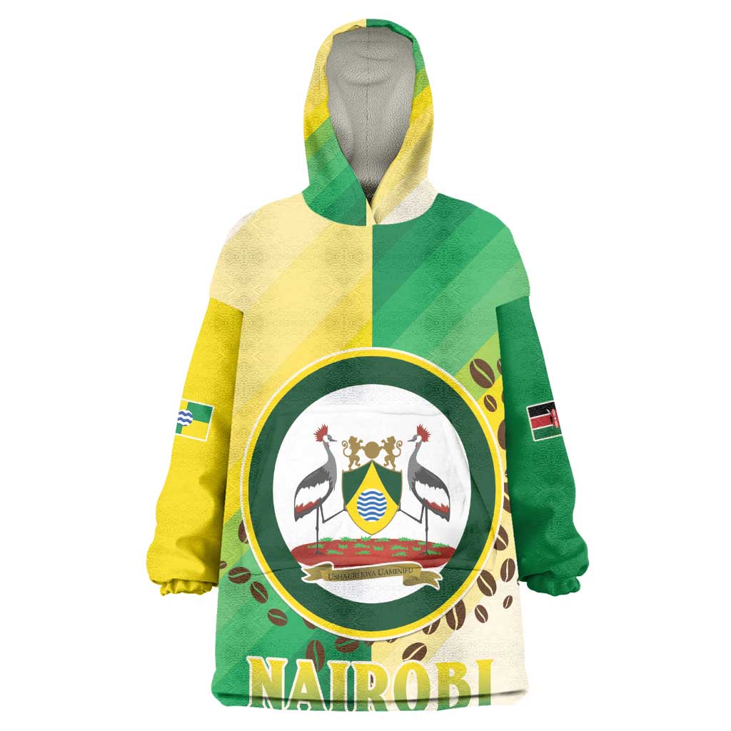 Personalised Nairobi Kenya Kid Wearable Blanket Hoodie Coat Of Arms With Coffee