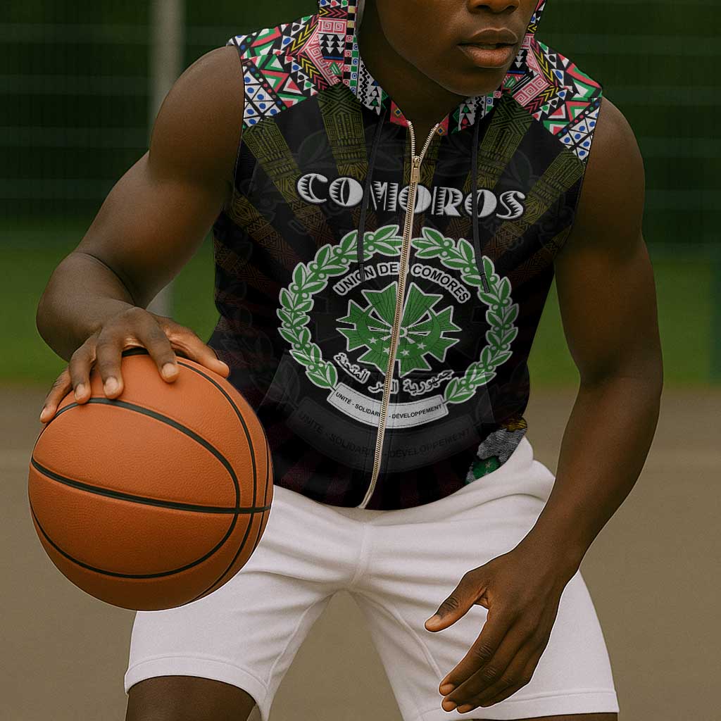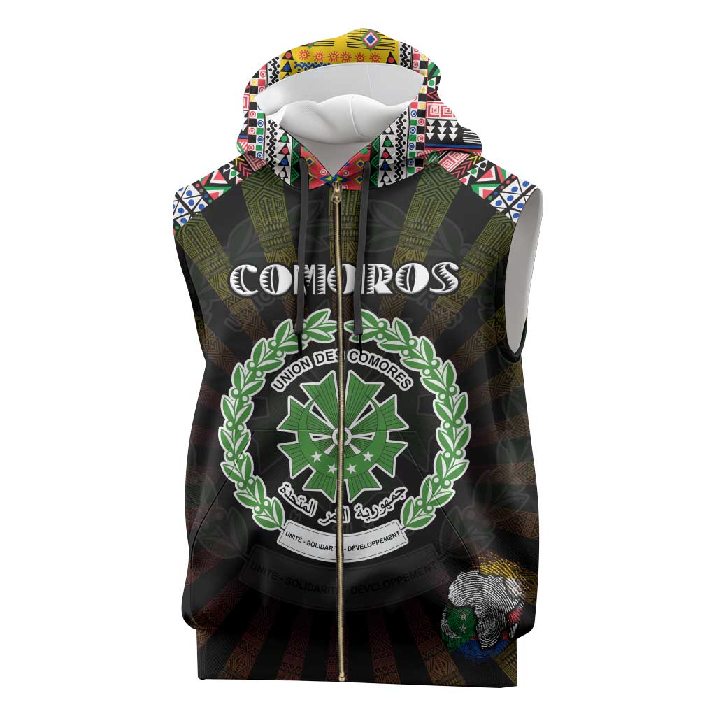 Personalized Comoros Roots Sleeveless Zip Hoodie African Pride in Fingerprint and Tribal Colors