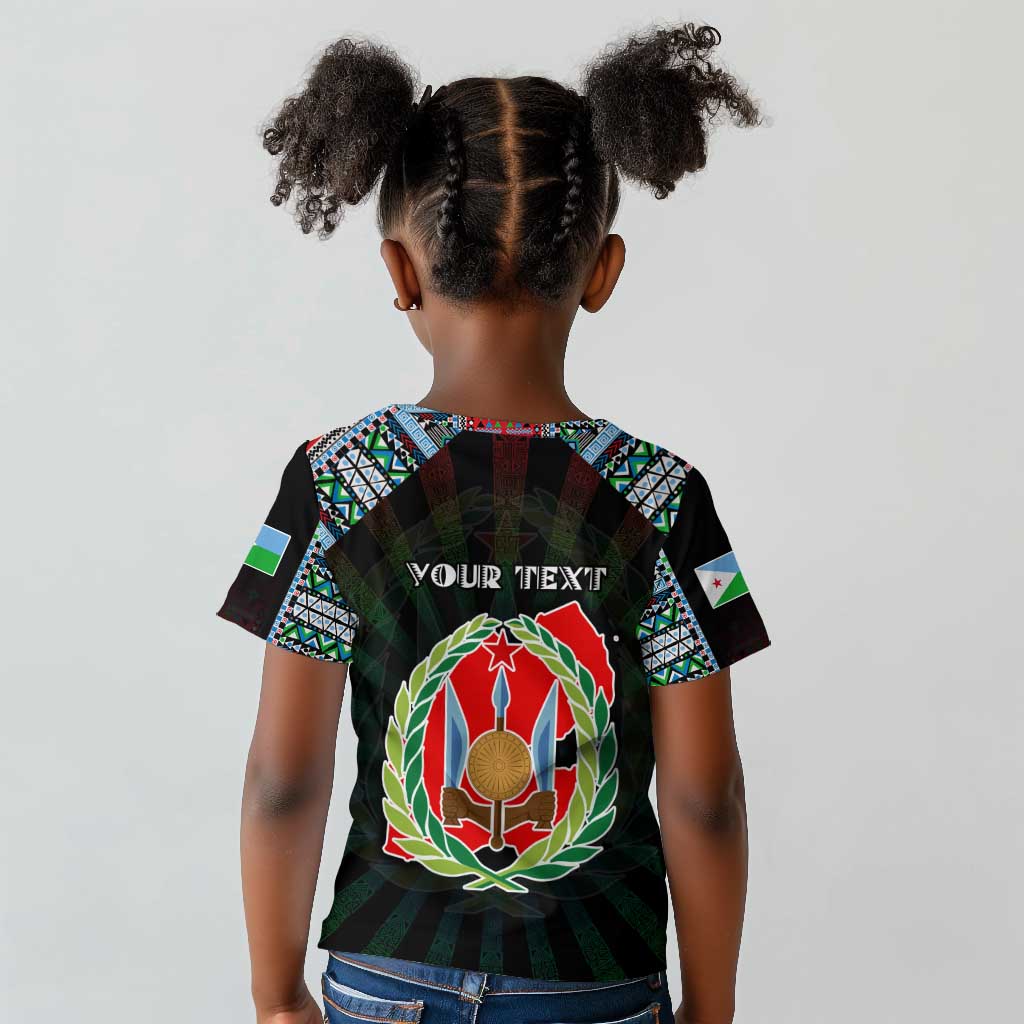 Personalized Djibouti Roots Kid T shirt African Pride in Fingerprint and Tribal Colors