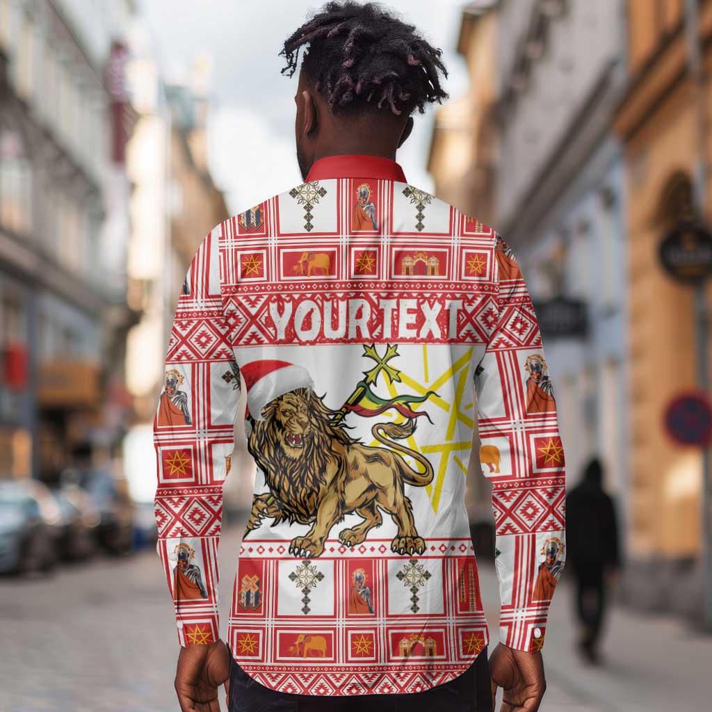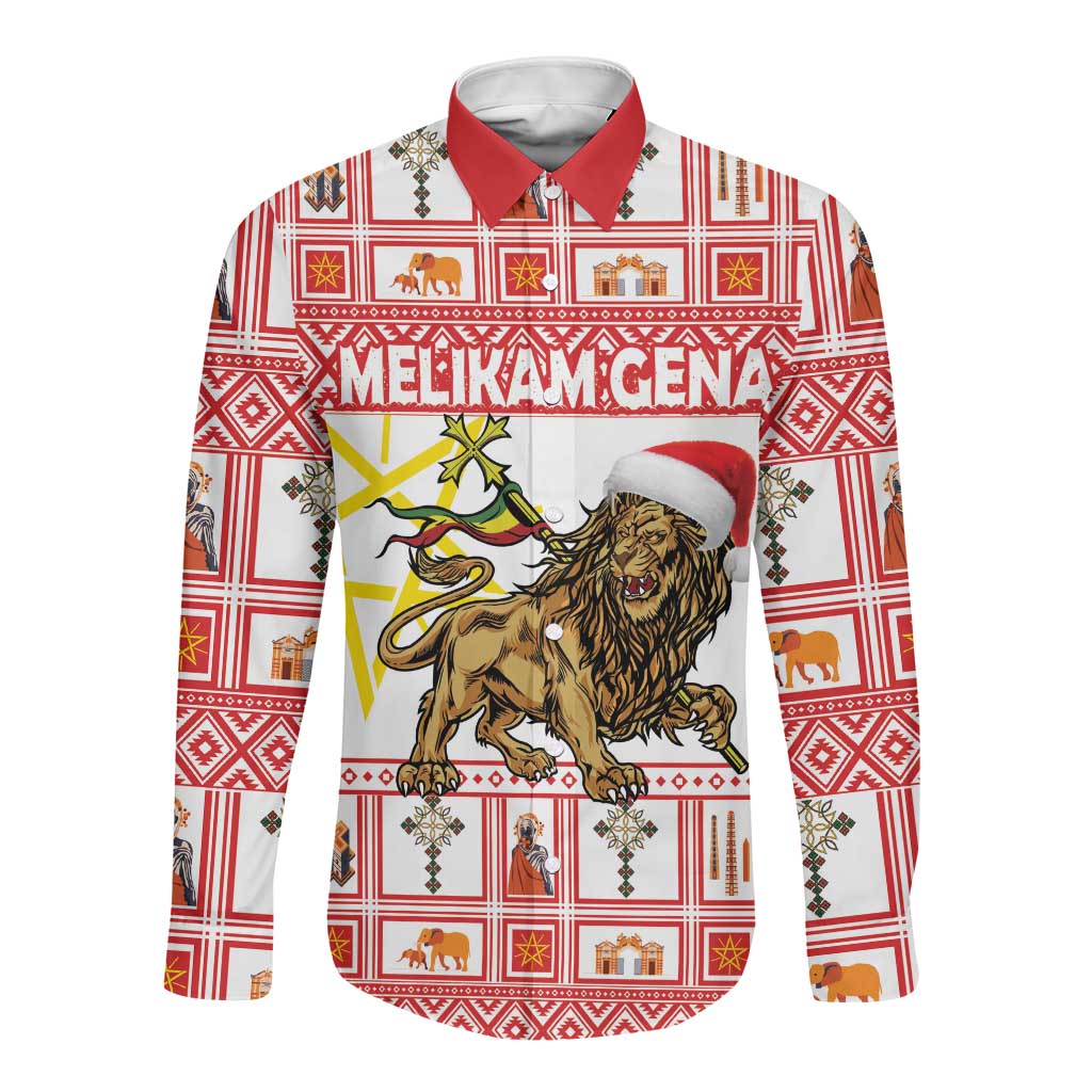 Personalized Ethiopia Melikam Gena Long Sleeve Button Shirt Merry Christmas Lion of Judah