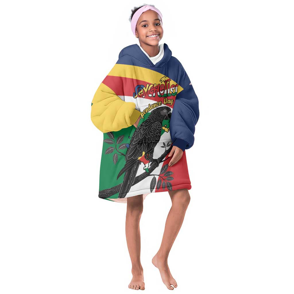 Personalized Happy Seychelles Independence Day Kid Wearable Blanket Hoodie Black Parrot Coat Of Arms