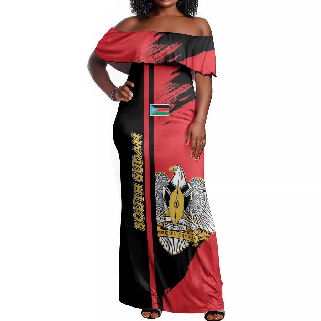 Personalized South Sudan With Coat Of Arms Off Shoulder Maxi Dress Sporty Style