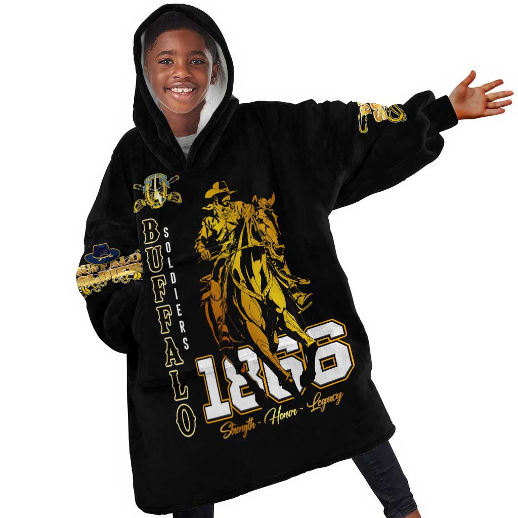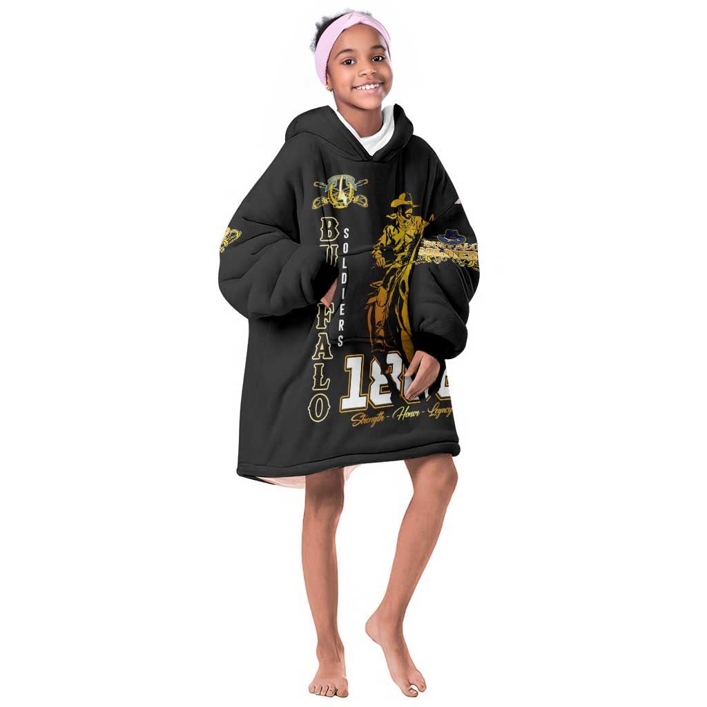 Strength Honor Legacy Buffalo Soldiers Kid Wearable Blanket Hoodie African American Cavalry Tribute