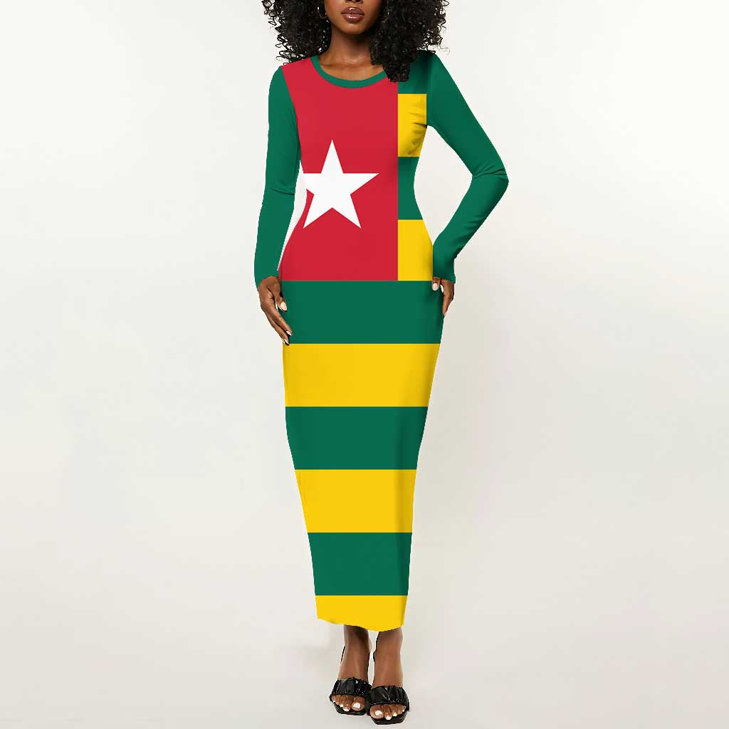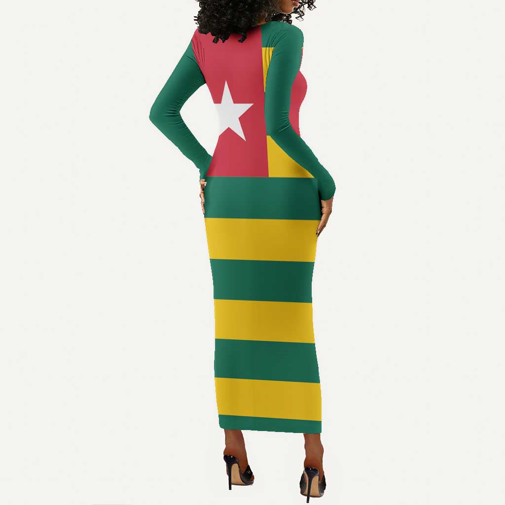 Togolese Independence Day Long Sleeve Bodycon Dress Flag Style