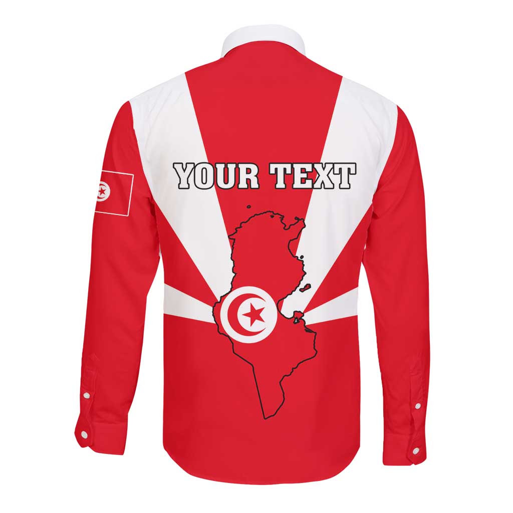 Tunisia Independence Day Long Sleeve Button Shirt with Coat of Arms and Flag Style