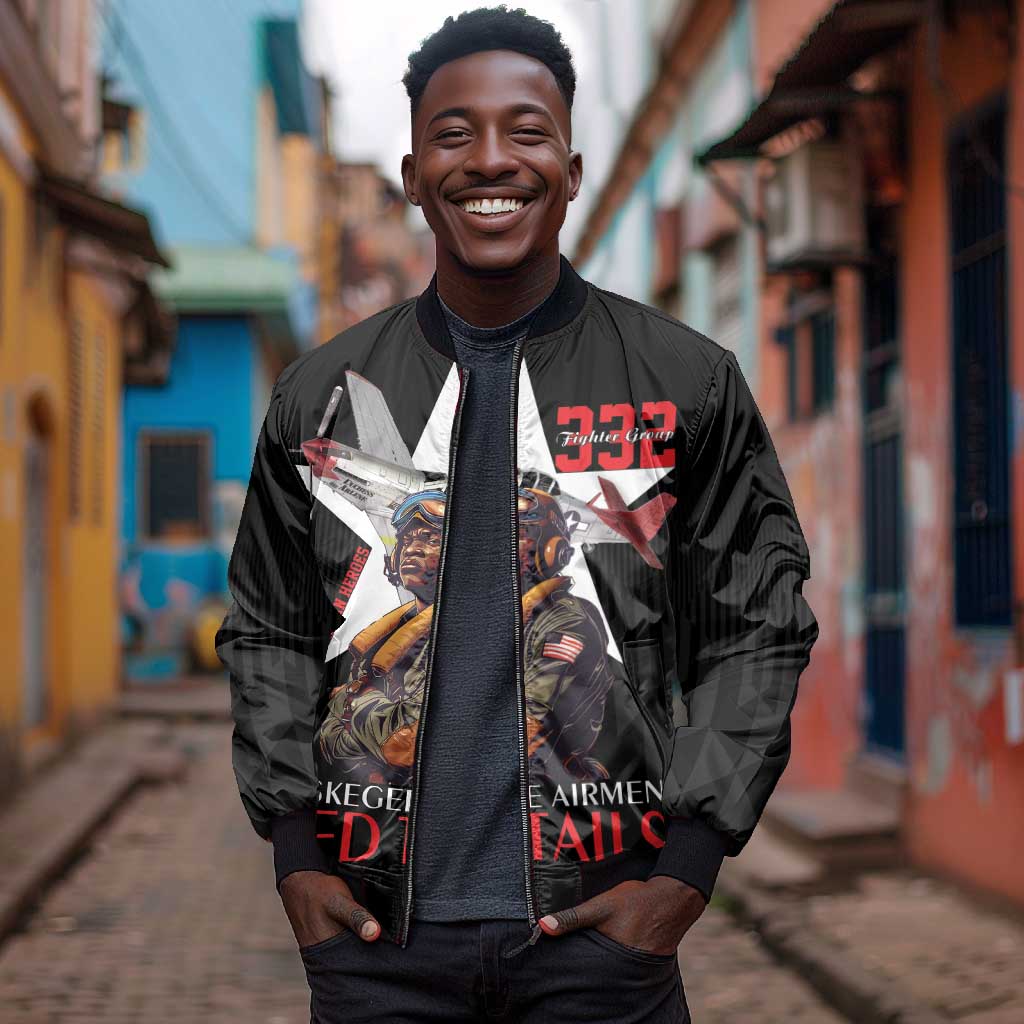 Tuskegee Airmen Red Tails Legacy Bomber Jacket African American Pilots - Black