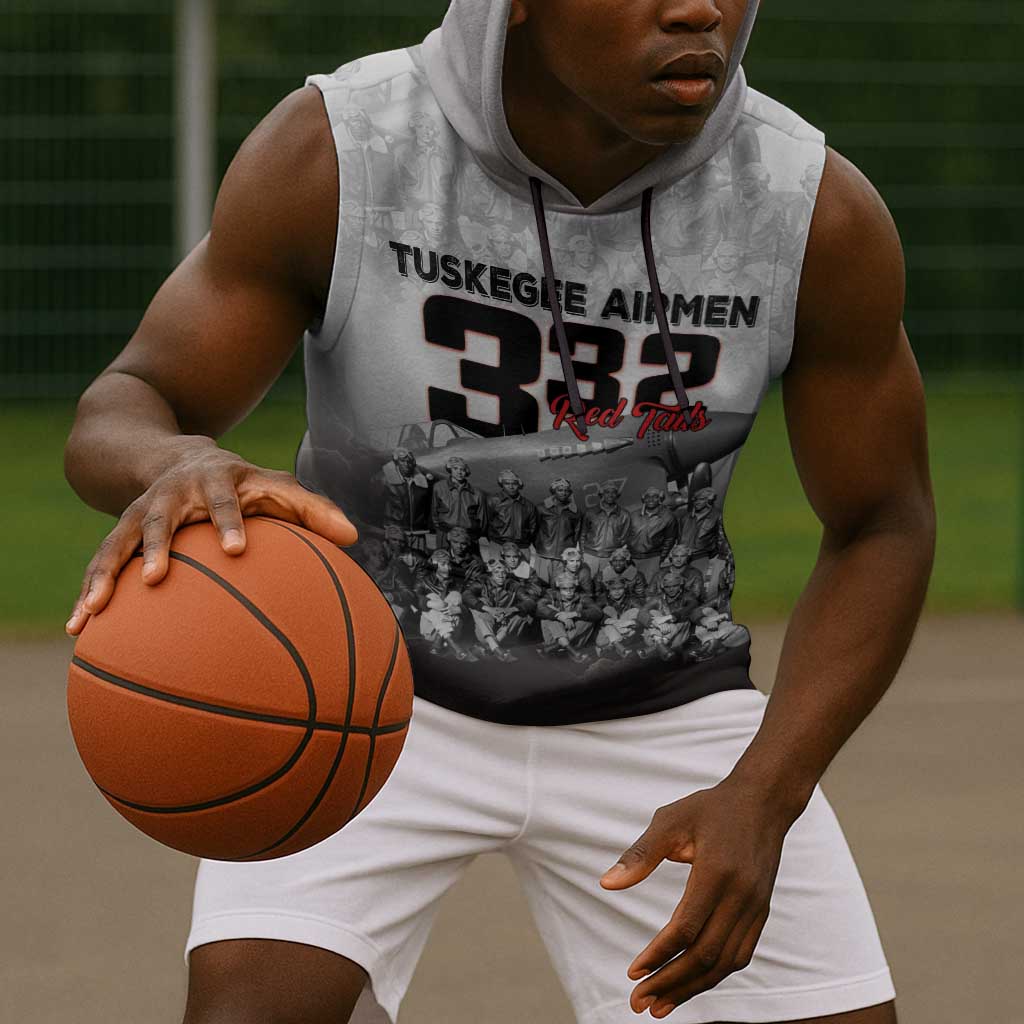 Tuskegee Airmen Red Tails Pride Sleeveless Hoodie 332nd Fighter Group