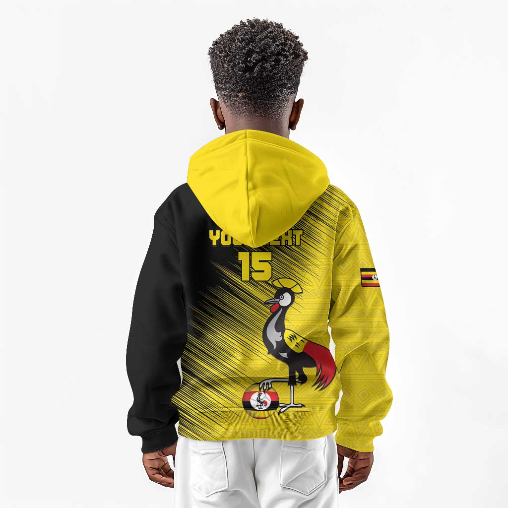 Uganda Football Custom Kid Hoodie African Pattern Mix Grunge Style - Yellow Color