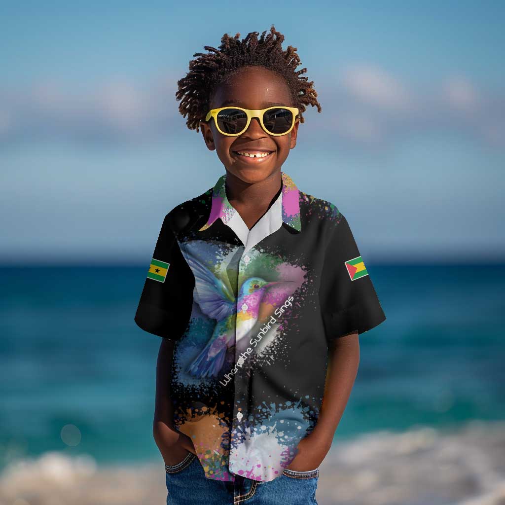 Where the Sunbird Sings Kid Hawaiian Shirt Sao Tome and Principe Flag - Color Splash Art